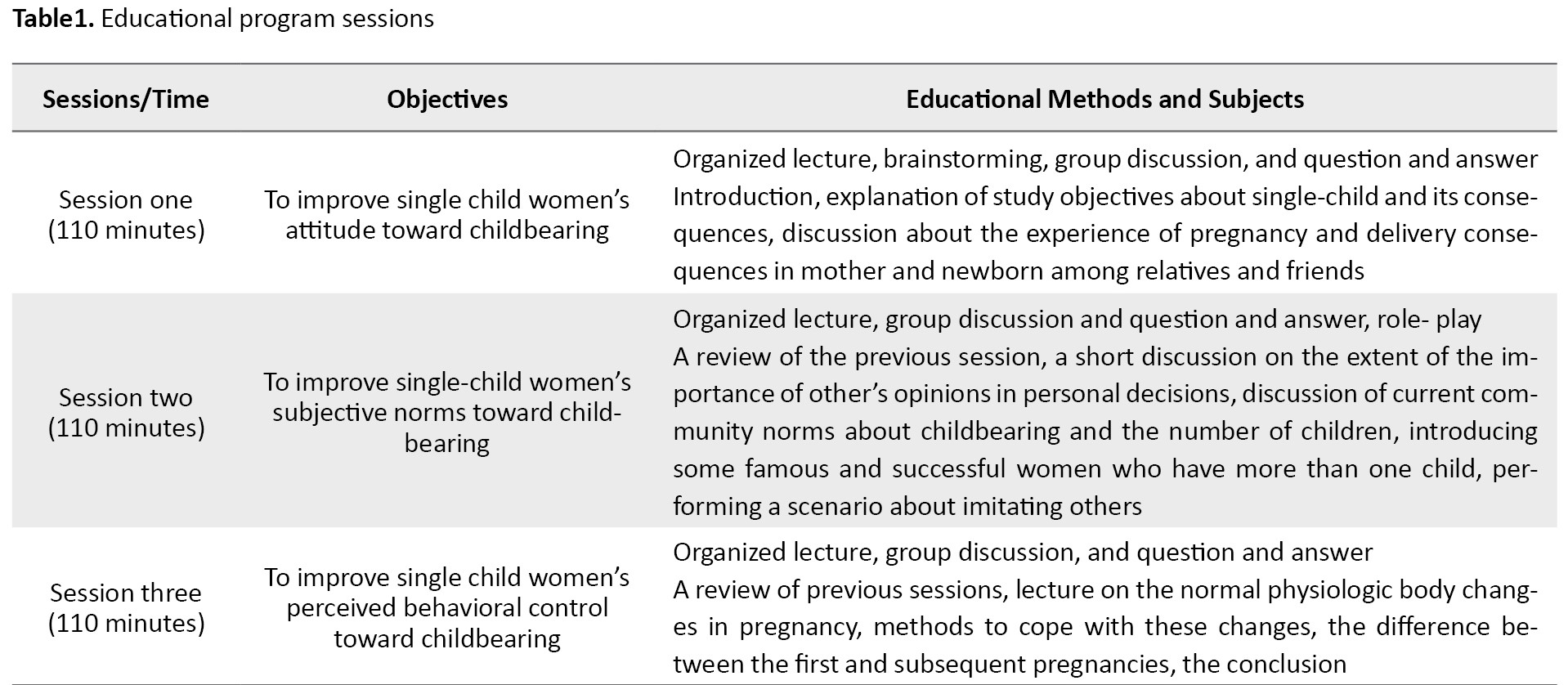 The results of the present study showed that educational program based on TPB is effective in increasing childbearing intention in single-child women. Taking into account the worrying situation of population growth in Iran and the prevalence of single-child behavior among Iranian women, it seems that educational programs for childbearing designed upon the theory of planned behavior like the educational program of the present study can effectively increase childbearing intention among single-child women and thus help the country’s significant population policies.