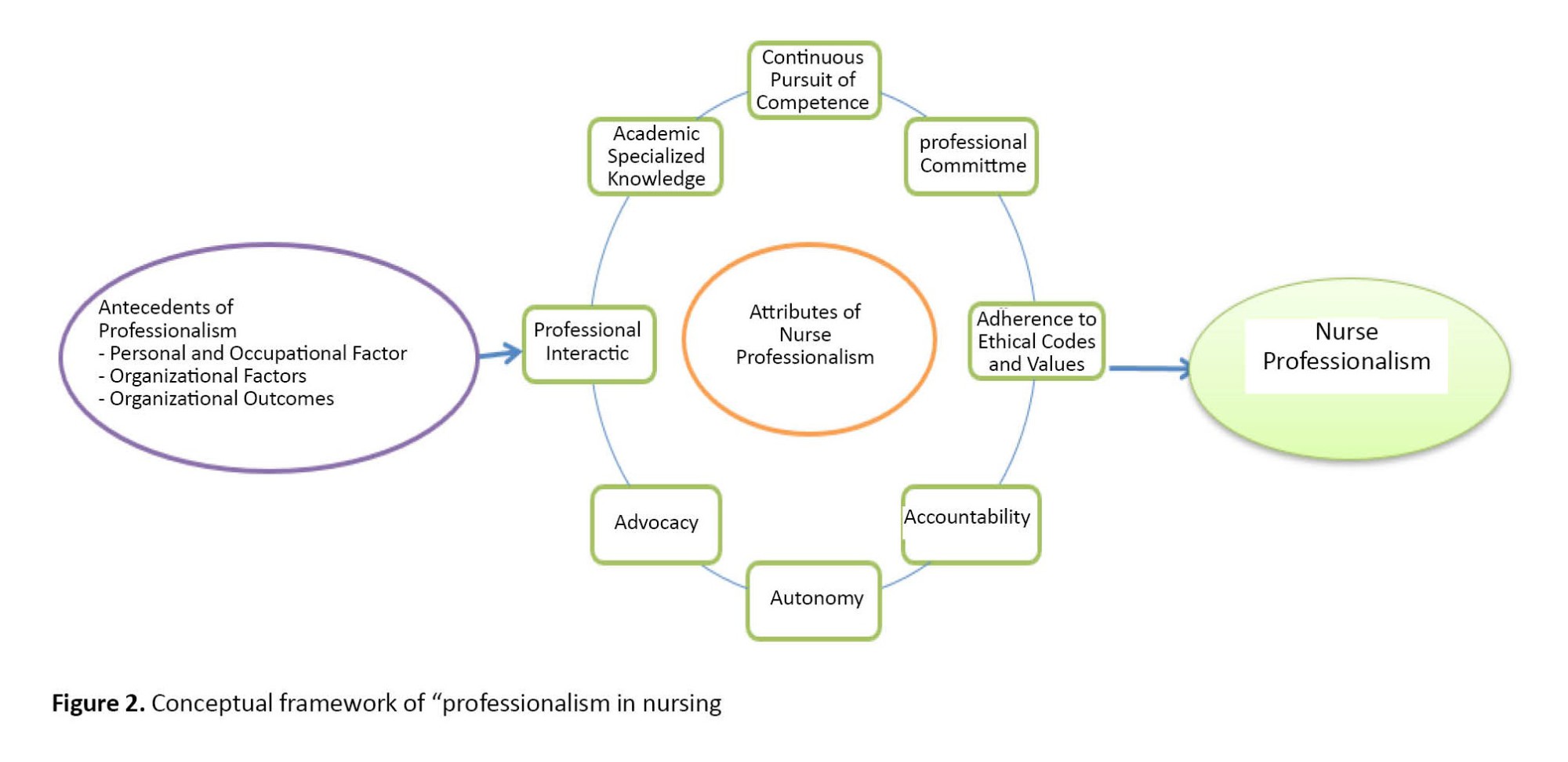 31]. After analyzing the studies, we managed to extract the definitions, attributes, antecedents, and consequences of “professionalism in nursing.”