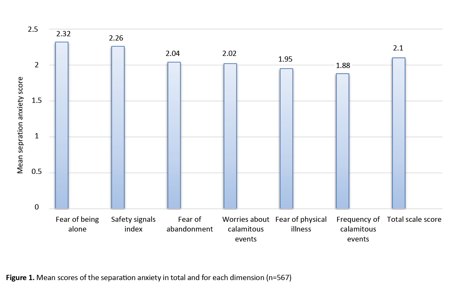 Figure 1 shows the scores of separation anxiety for each dimension.