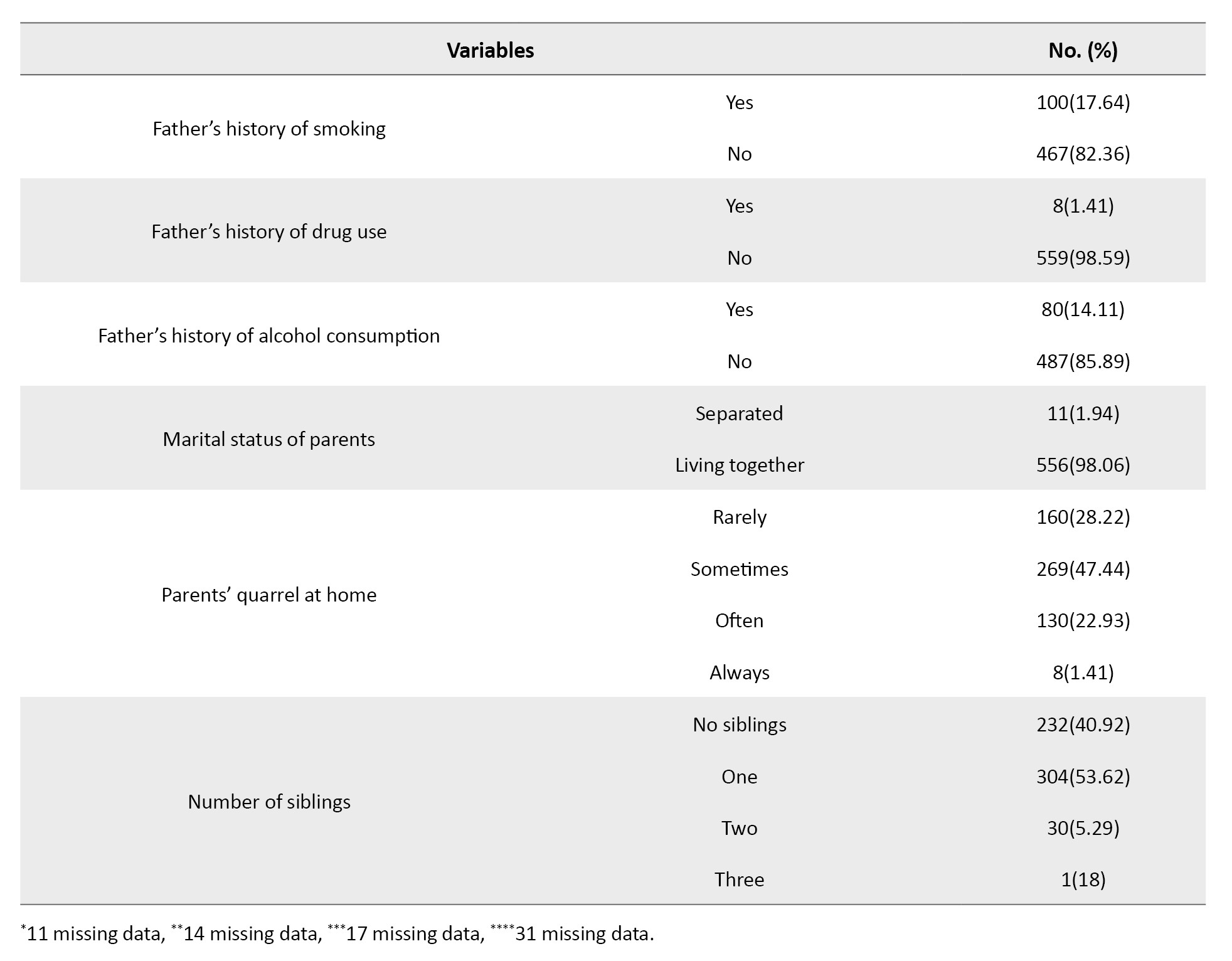 The separation anxiety score in children with older parents, having a mother with no history of depression, having a father with no history of smoking and alcohol consumption, having parents with a diploma, and having parents with no quarrels at home was lower compared to other children. In this regard, a study reported that the highest prevalence of anxiety disorders in Iranian children was in those whose mothers had a bachelor’s degree [