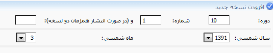 مدیریت نشریه | مدیریت نسخههاى نشریه | تعریف نسخه جدید برای نشریه برای انتشار مقالات |